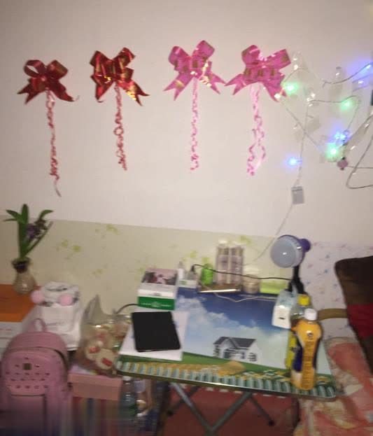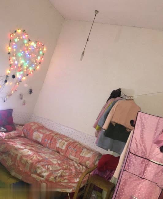 刚搬过来的时候装修很简陋,后来我们又自己动手简单装修了一下。这是我们温馨的小床