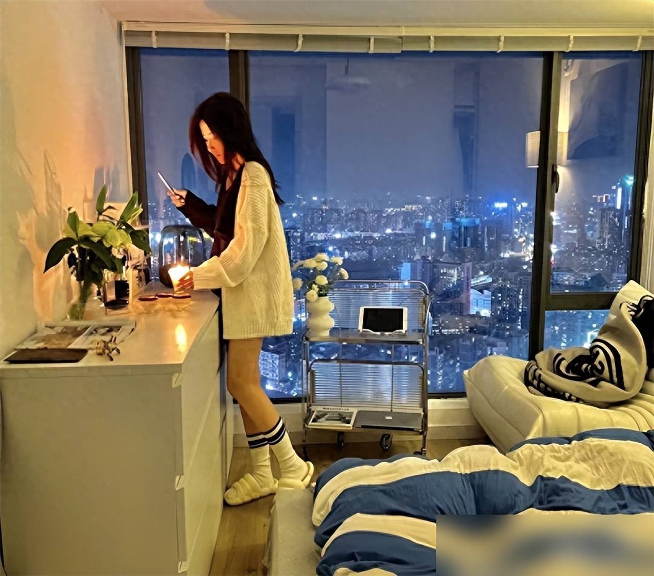 搭配可调亮度的灯,阅读、休息一键切换,氛围感拉满。